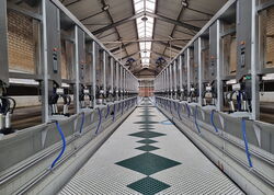 Ich war mit meiner Klasse am Montag den 1.7.2024 auf dem Bauernhof Drießen im Stadtteil Gelsenkirchen-Resse. Wir sind mit dem Bauern durch viele Ställe gegangen. Die Ställe waren voller Kühe. Um alle Tiere zu füttern, braucht der Bauer 25-30 Tonnen Futtermittel. Meine Klassenkameraden und ich haben fast alle Kühe gestreichelt. Der Bauer hat 400-1000 Kühe. Die Kühe, die er hat, zieht er selber auf. Nachdem wir bei den Kühen waren, gingen wir zu den Kälbern. Die Kälber sahen so aus wie Kühe in klein. Dann haben wir ein Kalb gesehen, das erst 15 Minuten alt war. Danach durften wir den Bauern interviewen. Er produziert nur Roh-Milch. Seine älteste Kuh ist 10 Jahre alt und seine jüngste Kuh ist 2 Jahre alt. Der Hof ist 150 Hektar groß. Am Tag kriegt Der Bauer 13-14,000 Liter und eine Kuh kostet 2,000 Euro. Das Futter kostet je 100kg 30 Euro.