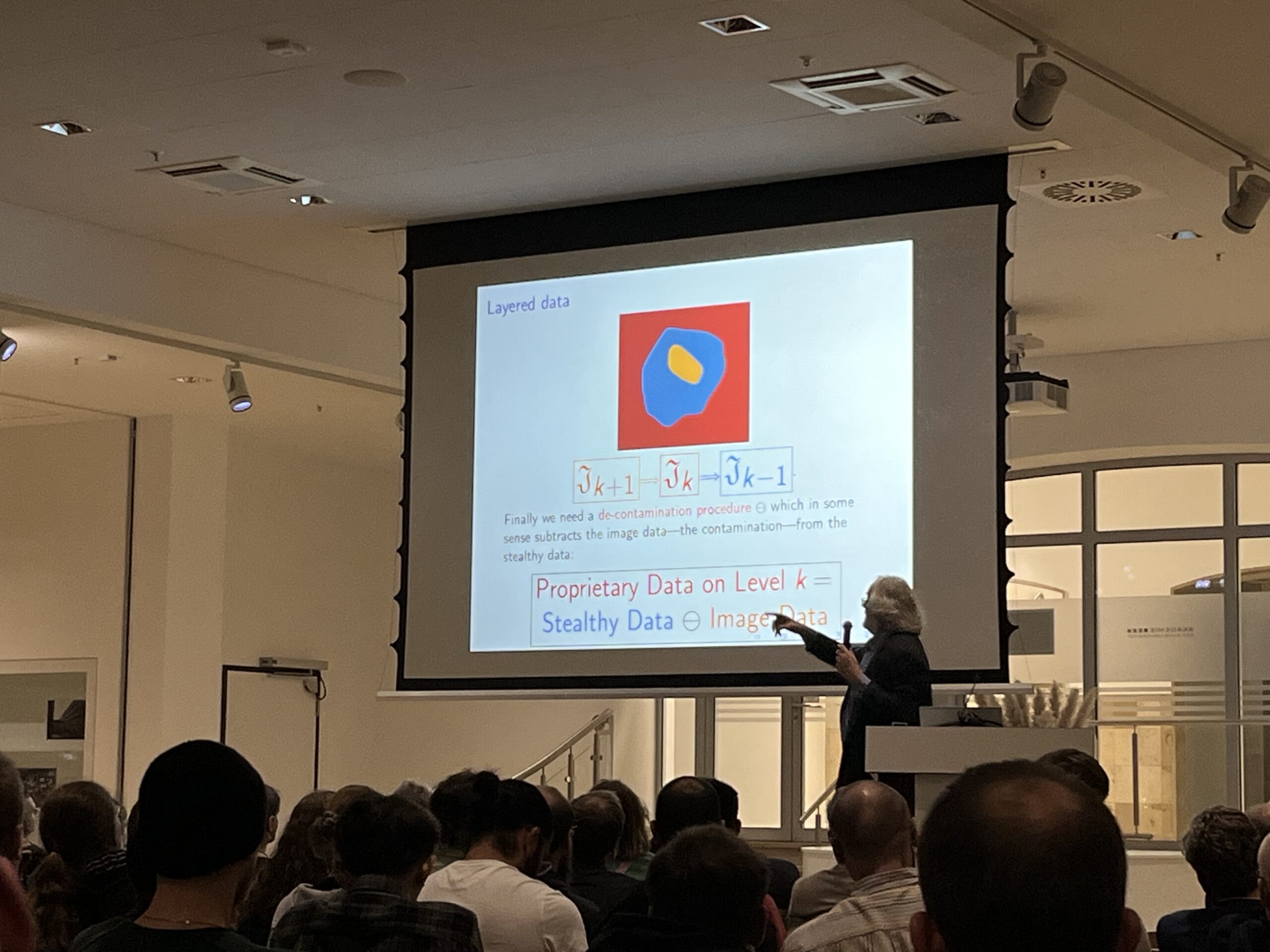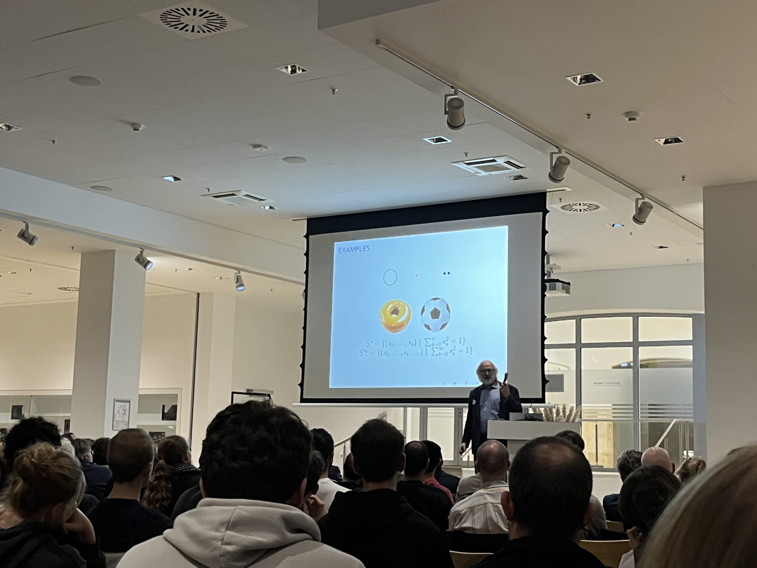 Der zweite Vortrag des Abends wurde von Helmut Hofer gehalten, einem sehr renommierten deutsch-amerikanischen Mathematiker und Professor in Princeton, der von 1889-1993 auch Professor an der Ruhr-Universität in Bochum war. Hofer gilt als Begründer der sogenannten symplektischen Topologie, einem Forschungsgebiet, das Mathematik und Physik miteinander verbindet und dabei hilft, Strukturen und Bewegungen in komplexen Räumen besser zu verstehen – etwa Planetenbahnen. Hofer hielt einen Vortrag über „Floer’s Jungle“. Dieser beruhte auf dem wissenschaftlichen Wirken des Mathematikers Andreas Floer, der in den 1980er ebenfalls unter anderem in Bochum an seinen Ideen arbeitete, die später zu der nach ihm benannten Floer Homologie wurden. In seinem Vortrag gab Hofer einen Einblick in die Bedeutung von Löchern für Floer-Homologien und erzählte insbesondere, wie skeptisch weite Teile der mathematischen Forschungskreise waren, als Floer in den 1980ern seine Ideen publizierte. Die große Bedeutung seiner Theorien wurde teilweise erst posthum ersichtlich, da Andreas Floer sein von Depressionen geprägtes Leben viel zu früh bereits im Alter von nur 34 Jahren auf tragische Weise beendete. Hofers Vortrag verband auf beeindruckende Weise das Leben Floers mit den mathematischen Grundgedanken seiner Theorie und den Innovationen, und ging dabei durchaus tief in die Materie ein.