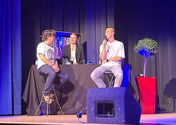Abschließend wurde er dann auch vom Publikum für seine aufgeschlossene und sehr sympathische Art mit großem Applaus gefeiert. Im Anschluss an die Show versprach Hennes Bender dem Kurs, dass er zu den Abiturfeierlichkeiten im nächsten Jahr kommen werde, worüber wir uns sehr freuen.