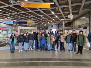 Zu den Fotos: – Die Schach-AG macht sich auf den Weg zum Schulschach-Landesfinale in Hamm – Eine Schachaufgabe wird gemeinsam gelöst. (Wer findet es? Schwarz am Zug setzt Matt in zwei Zügen.) – Alle konzentrieren sich auf die aktuelle Runde des Turniers